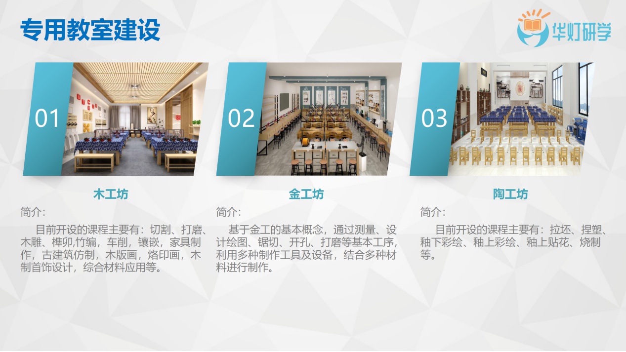 勞動教育專用課室建設:結合勞動場(chǎng)地和(hé)教學需求,設計(jì)适合學生(shēng)年齡特點的勞動教室,做(zuò)到學中做(zuò),做(zuò)中學。